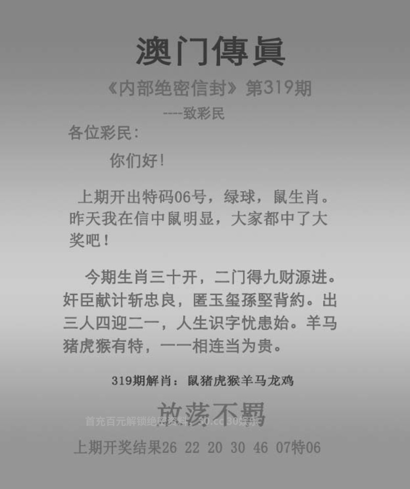 | 322期:绝杀三肖【狗鸡马】开:羊47中 |